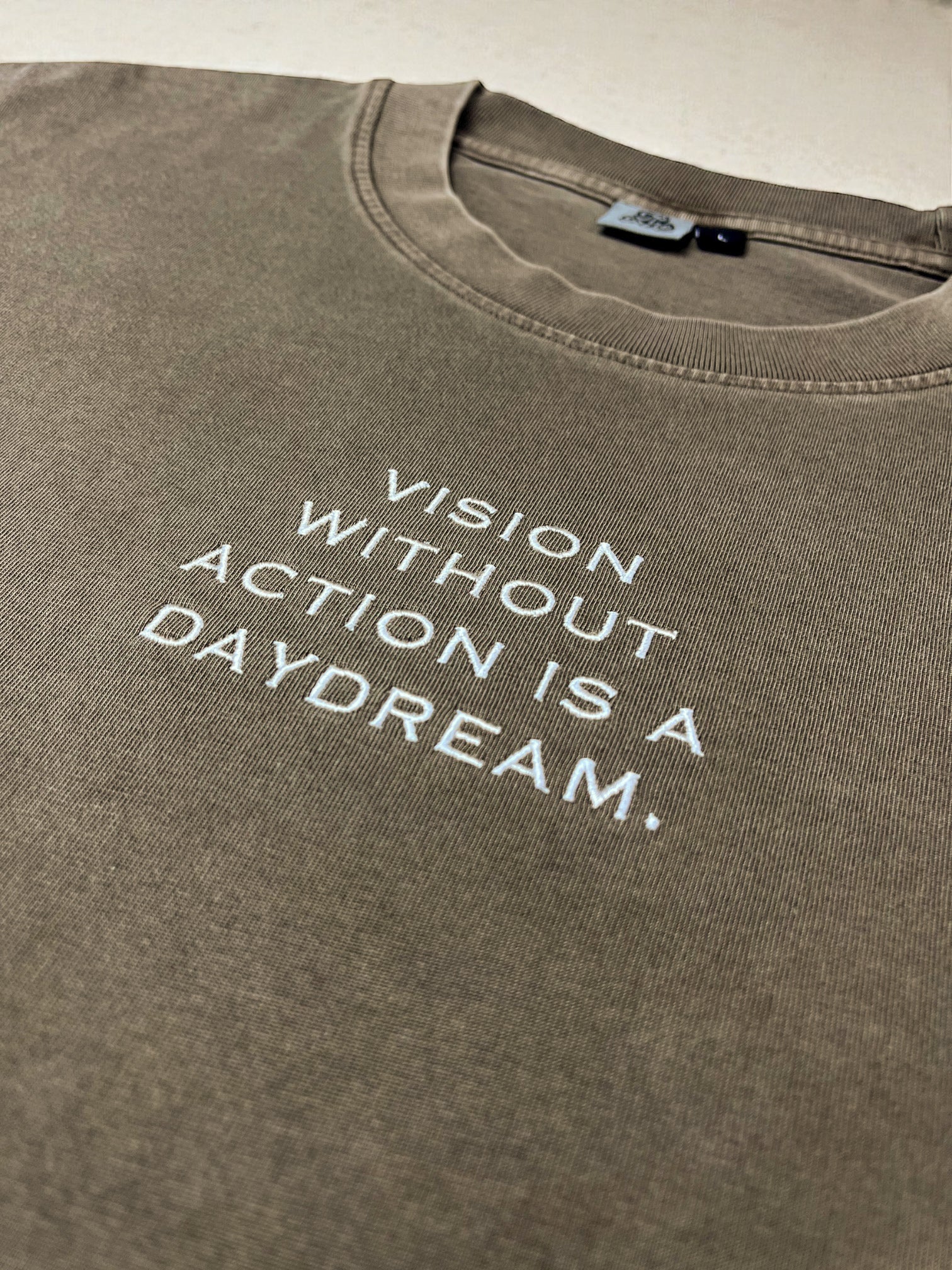 Crafted from 100% cotton, this heavyweight oversized tee blends comfort with durability. The raw-cut hem and structured drape give it a bold, modern silhouette that lasts wear after wear. This piece stands for one thing: vision without action is just a daydream- brought to life with the original “The Play” skeleton graphic printed on the back.